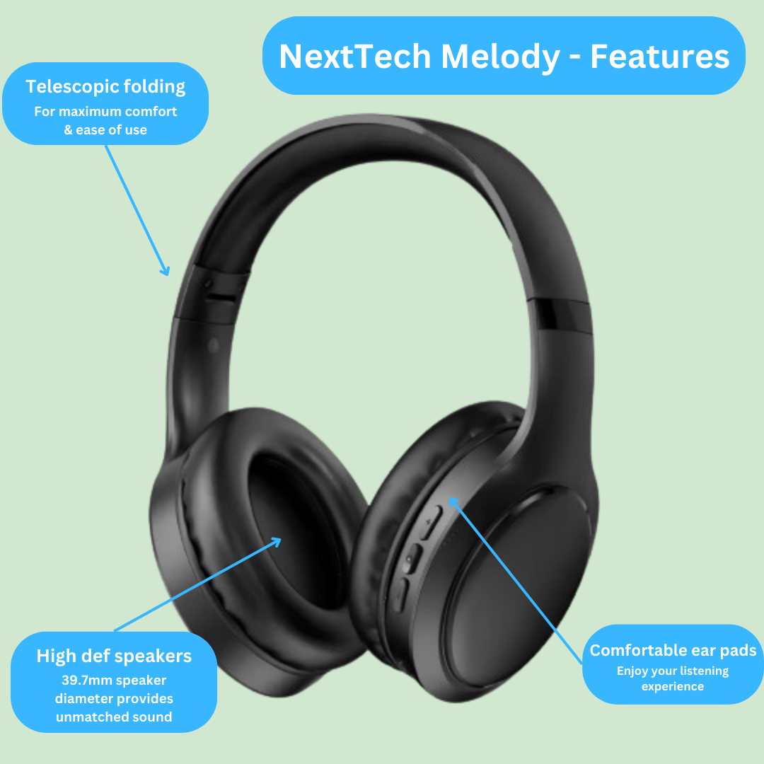 Our Melody headphones have been designed with user experience in mind, allowing you to listen to your favorite tunes or audiobooks with maximum comfort and high sound quality.
